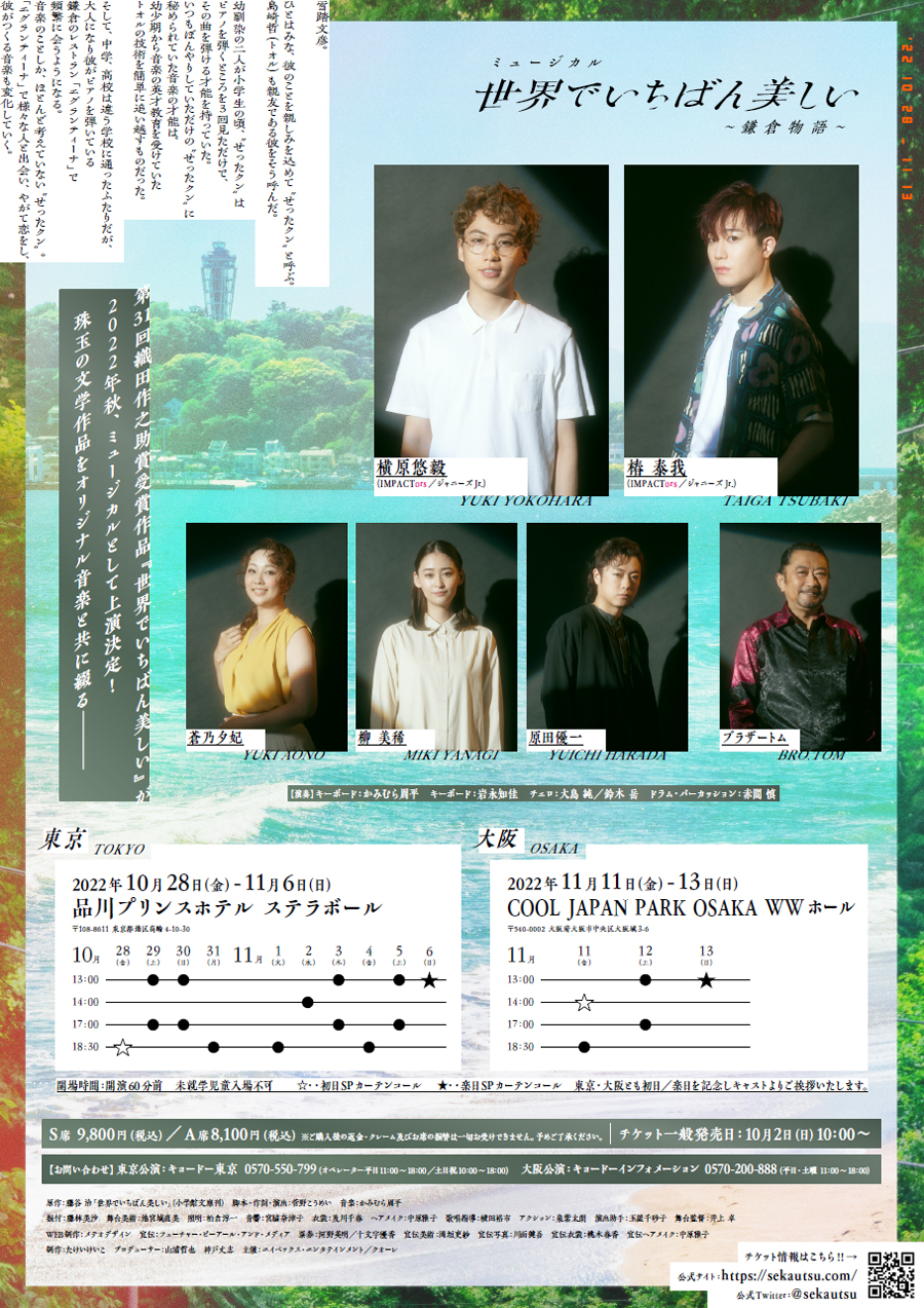 | 横原悠毅 | 今回、『世界でいちばん美しい』にて雪踏文彦役で主演を務めさせていただくIMPACTorsの横原悠毅です。僕は今回のこの舞台が初めての主演作品であり、初めてのミュージカル作品でもあります。ミュージカル作品での歌唱だったり初めてのことに挑戦する不安や、主演を務める事への責任感もありますが、信頼できるメンバーと共にW主演としてこの舞台に挑める事を嬉しく思います。少しでも興味をお持ちの方は、是非この舞台に足を運んでいただけたらなと思います。 |